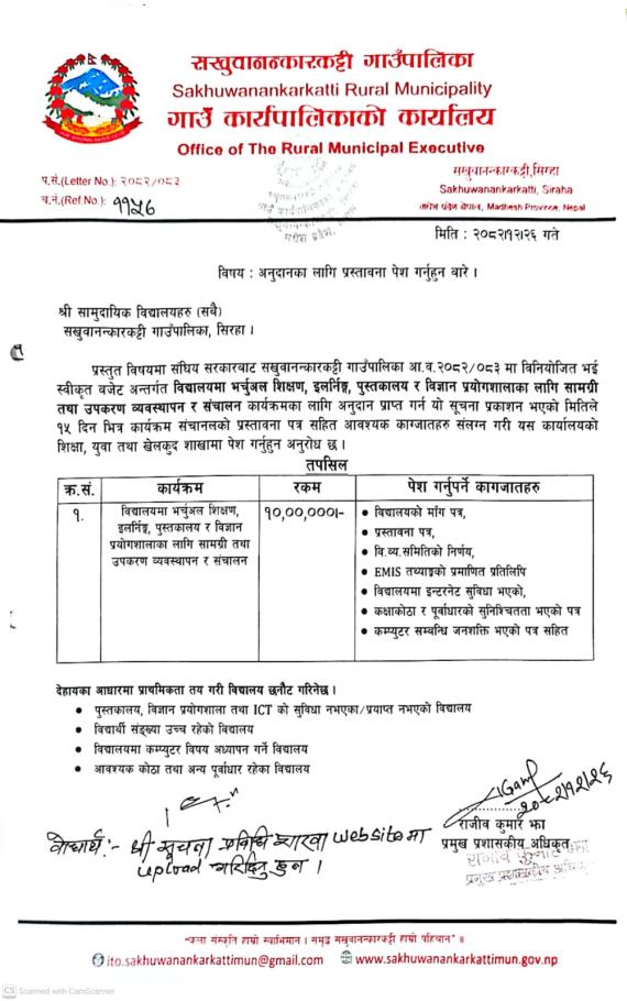 सखुवानन्कारकट्टी गाउँपालिका सिरहाको आ.वं. २०८०/८१ को विस्तृत कार्यक्रम