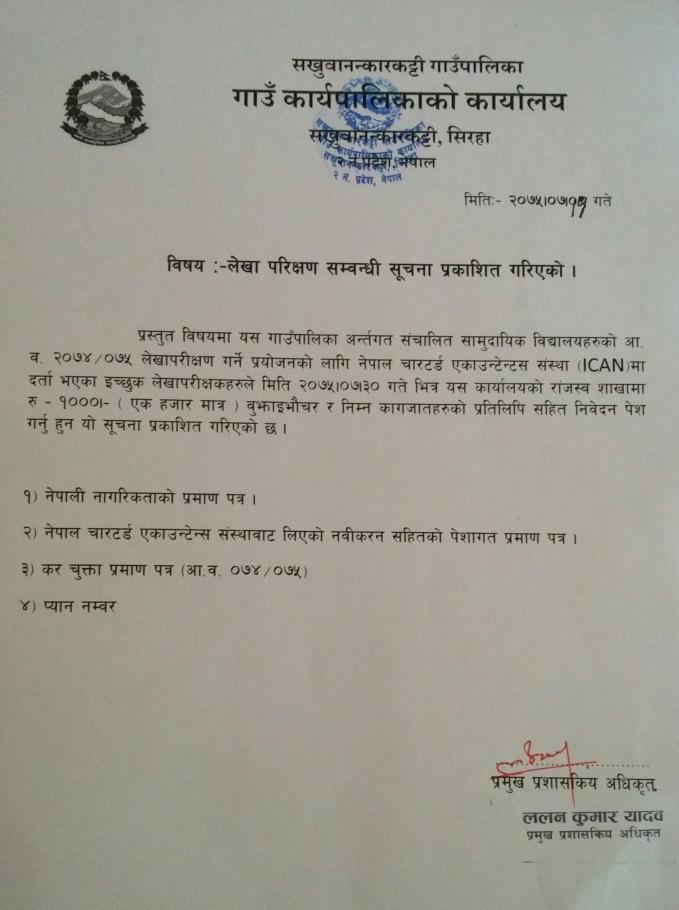 लेखा परिक्षण सम्वन्धी सूचना प्रकाशित गरिएकाे ।